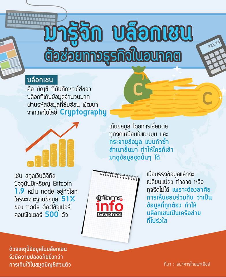 “มาถึงตรงนี้คุณอาจจะคิดว่า แบบนี้ใช้คนจำนวนหนึ่งไปยืนยันเปลี่ยนแปลงข้อมูลได้ ทางทฤษฎีแล้วใช่ แต่ในทางปฏิบัติ ยกตัวอย่างเช่น สกุลเงินดิจิทัล Bitcoin ซึ่งนำเทคโนโลยีบล็อกเชนไปใช้ ปัจจุบันมีเหรียญ Bitcoin 1.9 หมื่น node อยู่ทั่วโลก สมมติว่าใครอยากจะเจาะฐานข้อมูล 51% ของ node ที่มีอยู่ จะต้องใช้ซูเปอร์คอมพิวเตอร์ 500 ตัว จึงจะเข้าถึงได้หมด ดังนั้น ข้อมูลที่คุณอยากจะเจาะเข้าไปอาจจะไม่มีค่าพอสำหรับเวลาและราคาที่สูญเสีย”