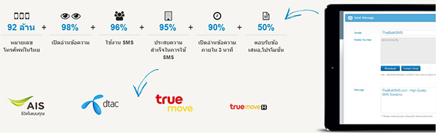 การตลาดยุคใหม่เราอาจจะนึกถึง Facebook หรือ Line แต่ในความเป็นจริงช่องทางการทำตลาดรูปแบบดั้งเดิมอย่างการส่งข้อความบนมือถือ (SMS) ยังคงได้รับความนิยม ข้อมูลจากการสำรวจพบว่าเมื่อเทียบกับช่องทางการสื่อสารอื่นๆแล้ว การทำการตลาดผ่าน SMS ได้รับการเปิดอ่านมากถึงกว่า 90%!!